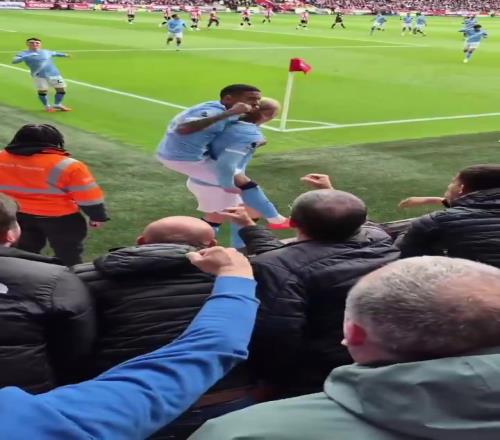 细!罗德里庆祝时招呼两名队友留在对方半场,防止对手开球