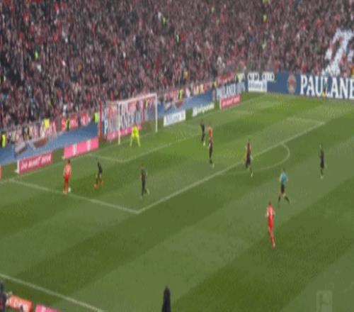 第81分钟,流畅配合,吉安努利斯倒三角,马森戈破门,奥格斯堡2-1拜仁