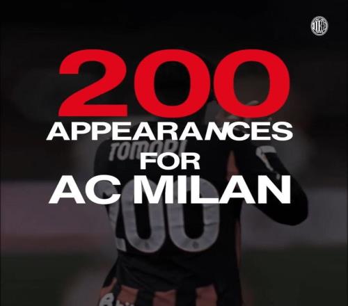 米兰后卫托莫里在本场比赛当中首发出场,这也使得这名英格兰后卫迎来了属于自己的里程碑时刻:这是他在米兰生涯的各项赛事里的第200次出场。