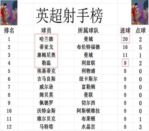 射手榜方面,哈兰德20球稳居榜首,蒂亚戈16球紧随其后,塞梅尼奥11球排在第3。勒温今天没能进球,还是9球排在第4,佩德罗,姆贝莫等人8球刚好挤入前十。